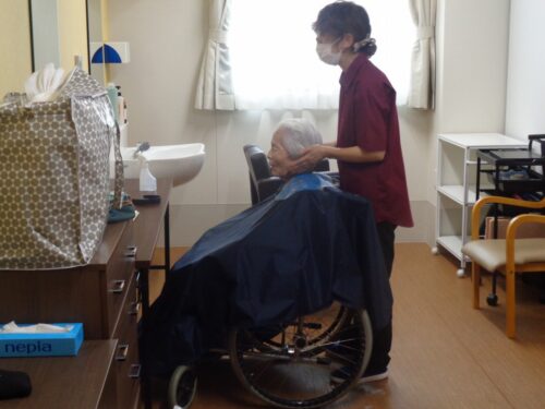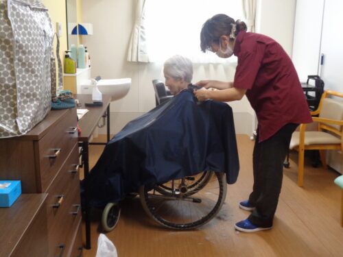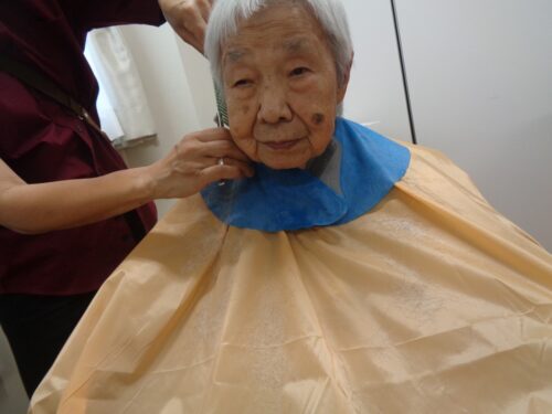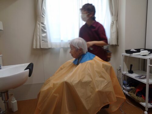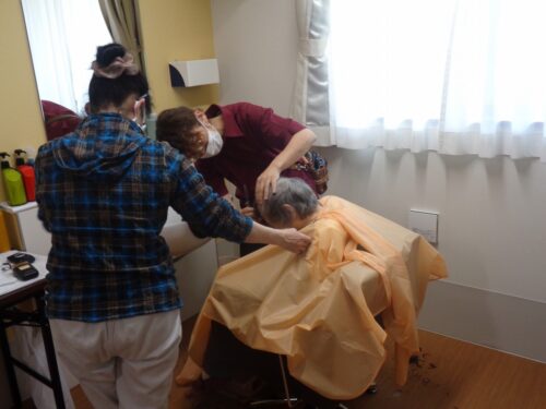 美容師さんの話術と手際の良さで、ご入居者様も落ち着いています✂✂