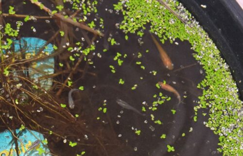 ひと冬越して、少し少なくなったので、今月、新たに12匹のヒメダカ、白メダカ、黒メダカを放流しました!