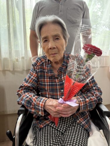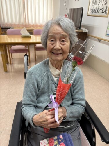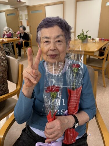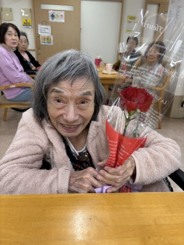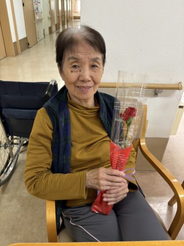先日、母の日には日頃の感謝の意をこめて、入居者様にカーネーションの贈呈をさせていただきました。