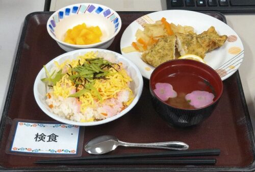 皆様に大人気なちらし寿司と魚のフライです♬