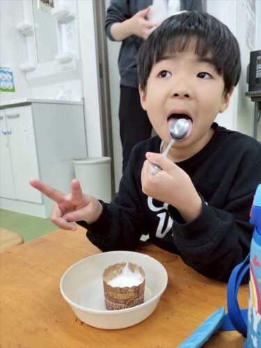 プルプル食感のカップケーキは初めてかな?いろいろな食体験を重ねていきたいね。