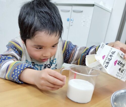片手で器用に卵割りできる子もいます😉