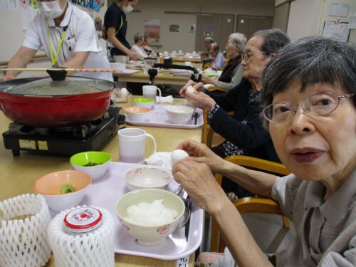 お応えして、昼食時にすき焼きを提供させて頂きました。