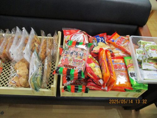 柿の種、歌舞伎揚げ、チョコレートもいいなー悩んでいる所