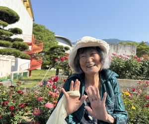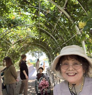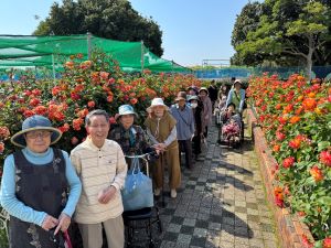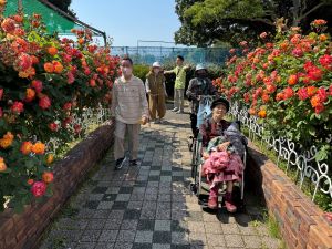 皆様、帽子を準備してのバラ園、見学をいたしました。