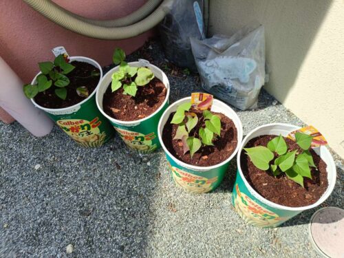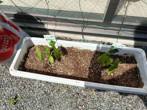 今年は鈴木ホーム長が大張り切りでサツマイモ数種類とキュウリの苗を植えてくれました。