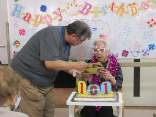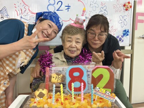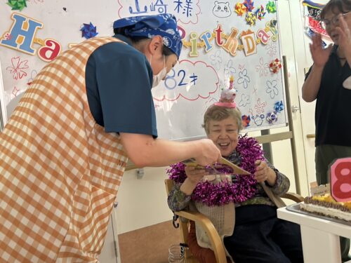 山崎様と同様、色紙、ケーキ、お誕生日ソングの
