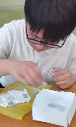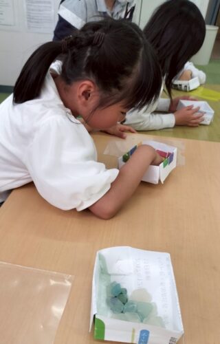 砂浜に落ちている磨りガラス、シーグラスを使って飾りを作りました🏖️