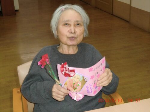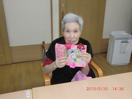 グループホームひかり 「母の日」 2025-05-15 2025-05-15 5月11日日曜日の午後です。 2階の入居者様に母の日のカーネーションと色紙をプレゼントさせて頂きました。 入居者様の笑顔を拝見して、職員もたくさんの元気を頂きました。 ありがとうございます。 担当:内橋