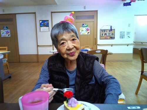 ケーキをご用意致しました。後日、職員からお祝いの色紙をプレゼント致しました。