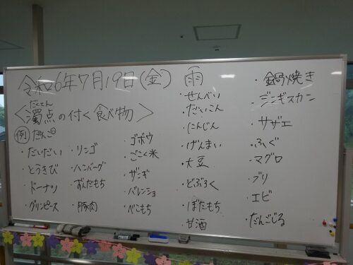 さわやか室蘭弐番館 2階 18日活力朝礼♪ 2024-07-20 2024-07-19 皆様こんにちは♪ 昨日の様子をお届けします 元気の源 ラジオ体操です 音楽に合わせて体を動かします 頭の体操は濁点の付く食べ物 お答え頂きました