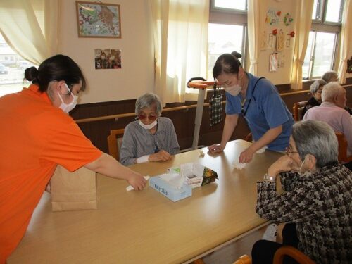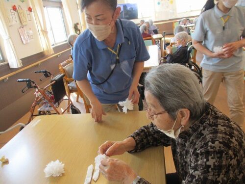 皆様にお花紙を広げてもらっています(*'▽')✨