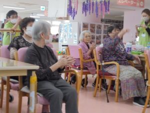 5月ということで「鯉のぼり」の歌、「みかんの花」の歌も歌いました。