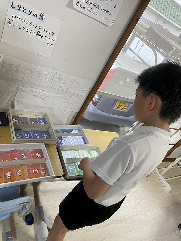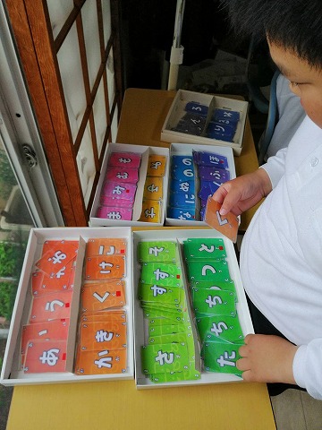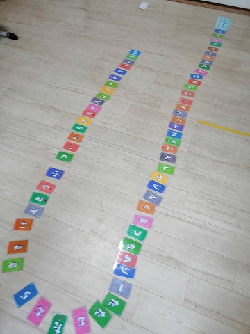 2,3年生はひらがなカードを使って「しりとりの輪」を作りました。