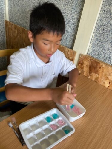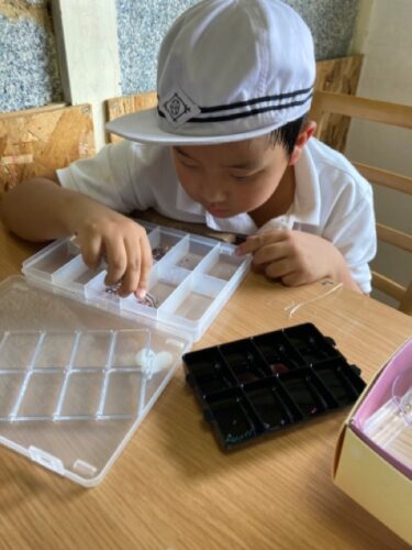 ピンセットを使って、ビーズの仕分けをしてくれる児童もいました👏
