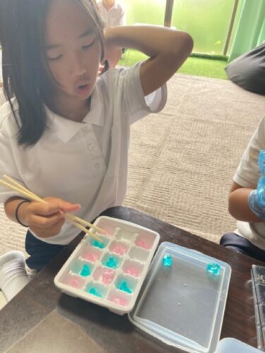 小石をトングで、ビーズをお箸で、など色々な組み合わせで挑戦してみました。