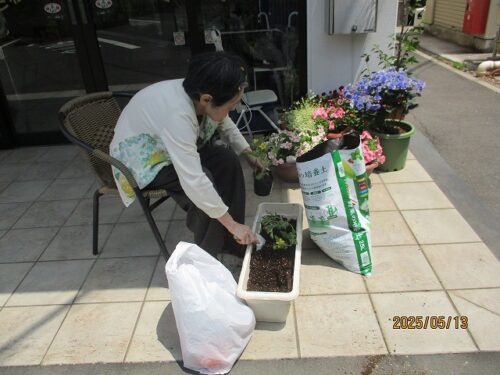 施設に戻り早速苗を植えました(⌒∇⌒)