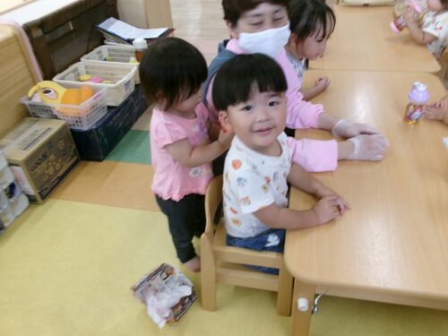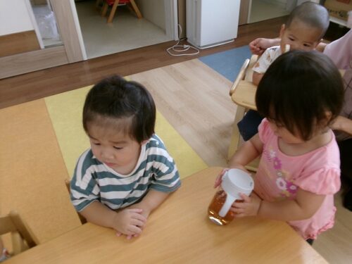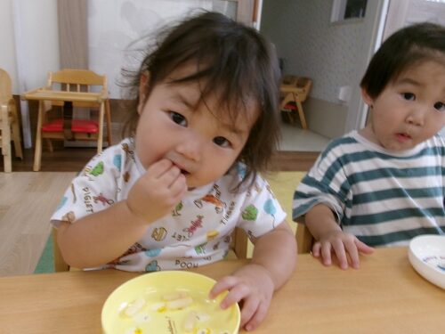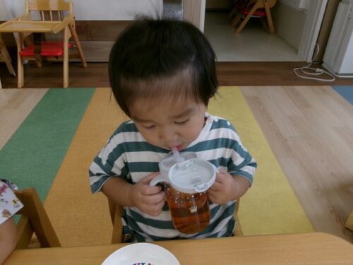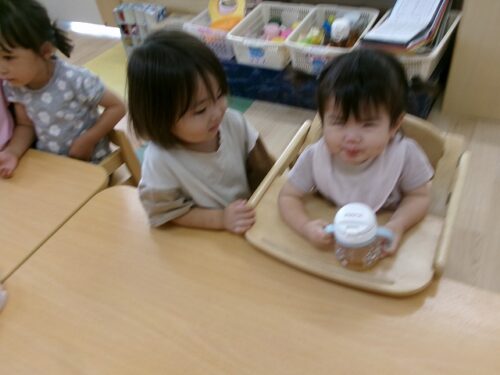 おやつの席は決まっておらずみんな好きなことろに座っています