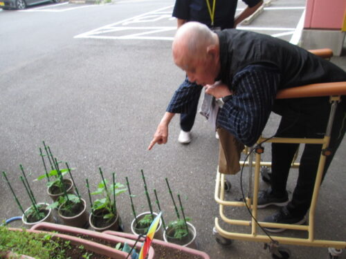 今日は朝の体操の前に入居者様と野菜のチェックをしました。