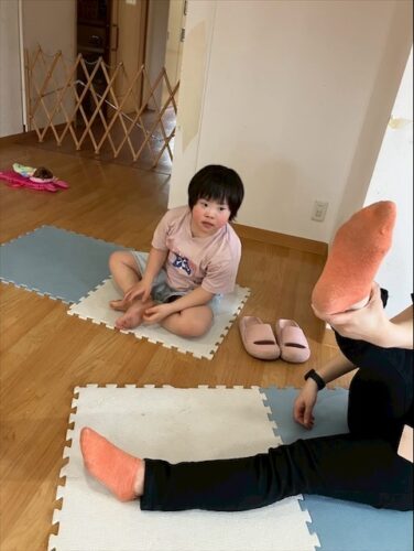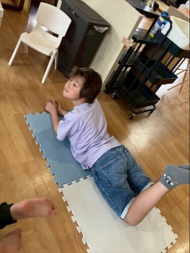 今日はみんなでヨガをしました。1人ひとりマットに上がりヨガの動画を見ながらヨガを楽しみました。