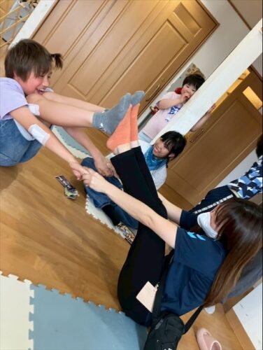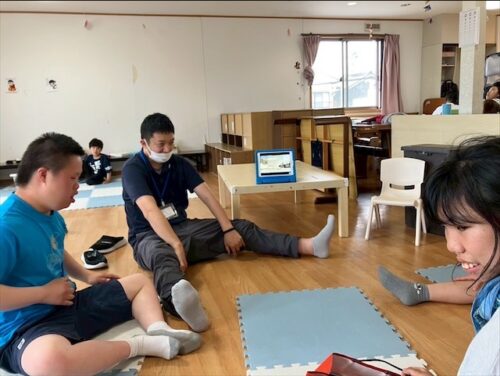 職員と一緒に自分の身体を動かして身体をほぐしました。