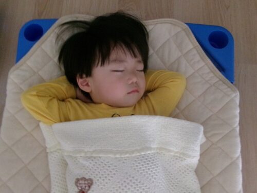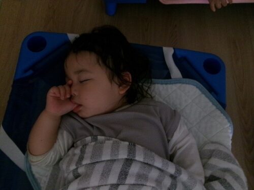 はじめは泣く子が続出だった午睡タイムも、今では気持ち良さそうに眠っております(泣かずに済んだ午睡一日目は奇跡だったようです(笑))