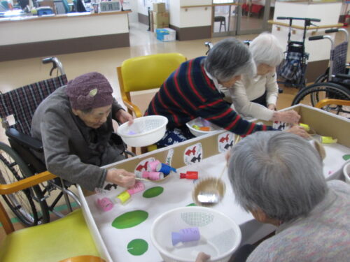 今日の午後レクは「金魚すくい」を行いました🐟