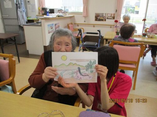 フロアに行くと完成したぬりえを見せて下さいました(^^♪