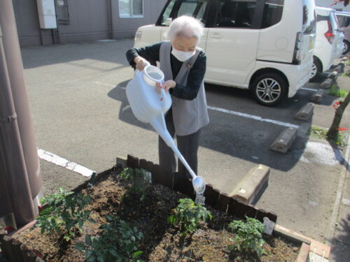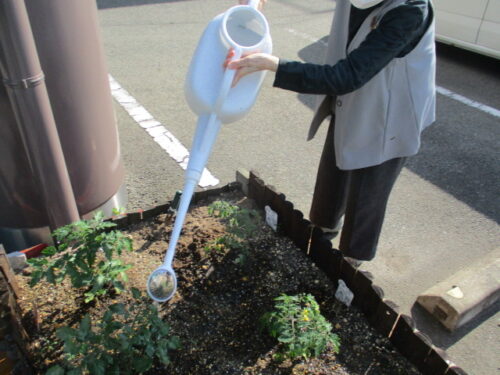 桜弐番館では玄関を出たところでミニトマトを育てています!