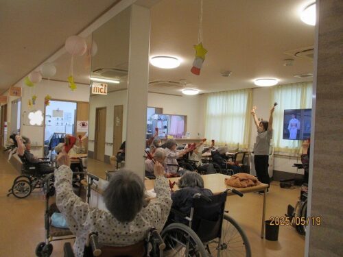 さわやかくまがや館 活力朝礼 2025-05-19 2025-05-19 こんにちは。 本日の活力朝礼は、鳴子を両手にダンシング~(^^♪ 皆さま楽しそうに踊っていましたよ~(/・ω・)/ 活力アップですね✨ 担当:猫編集員2号