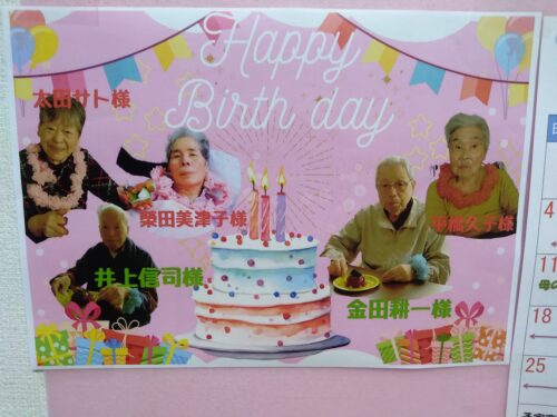 さわやか海響館 誕生日会を行いました。 2025-05-20 2025-05-19 こんにちは。さわやか海響館です。 5月に誕生日を迎えられる入居者様をお祝いしました。 若かった頃の苦労話や楽しかった事などのお話しをされたり、とても楽しい一時を過ごして頂けました。 皆様、ありがとうございました。