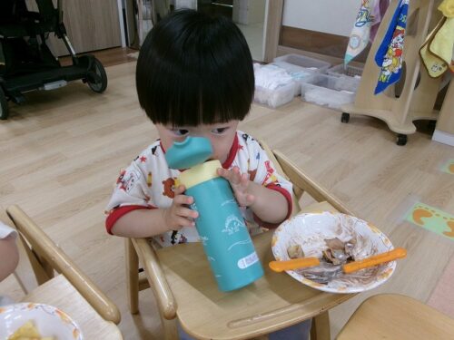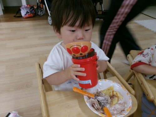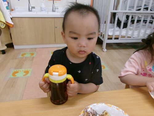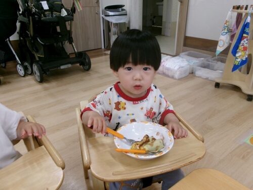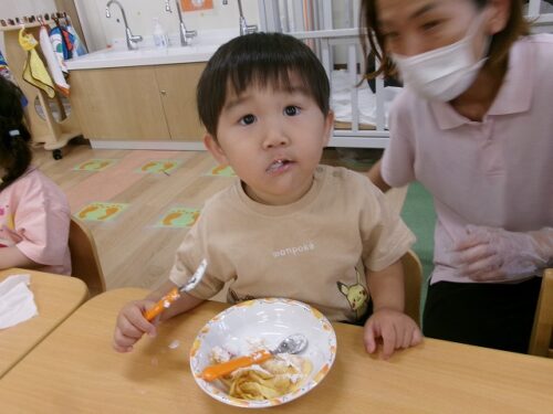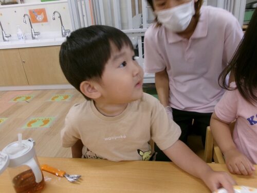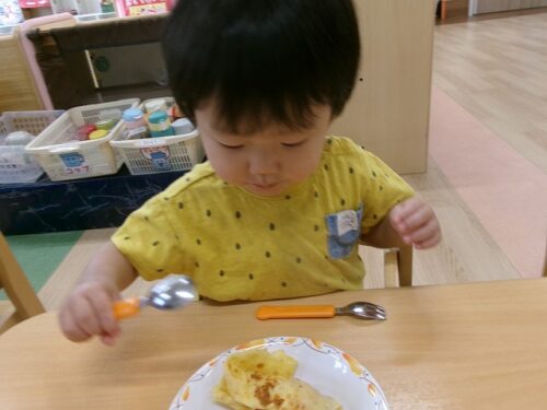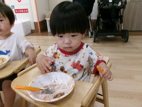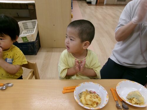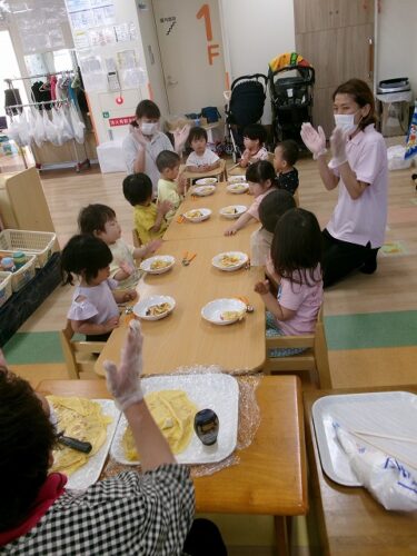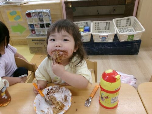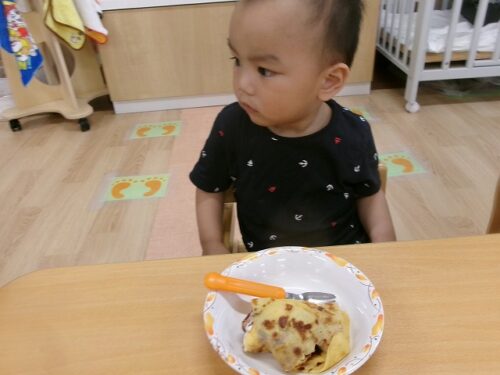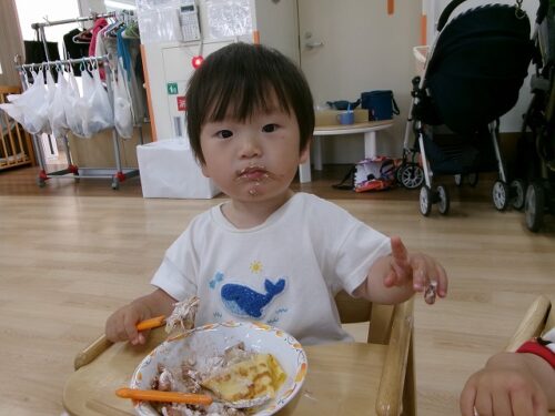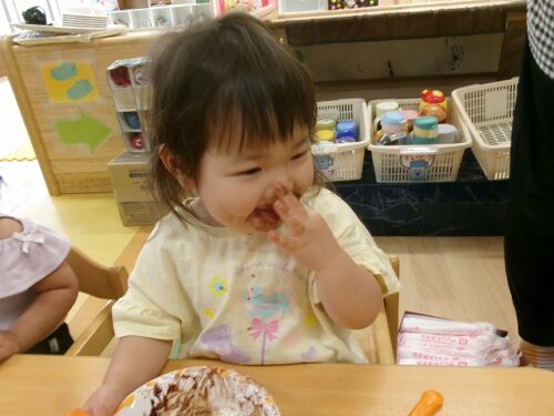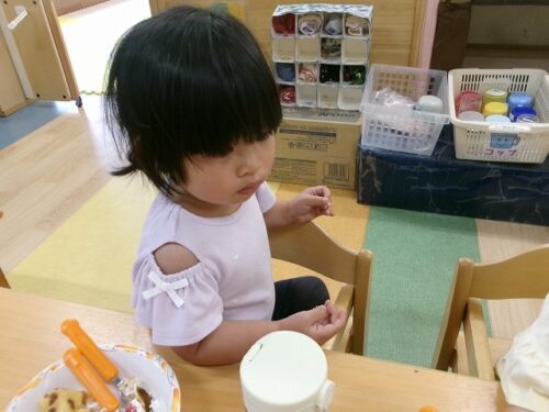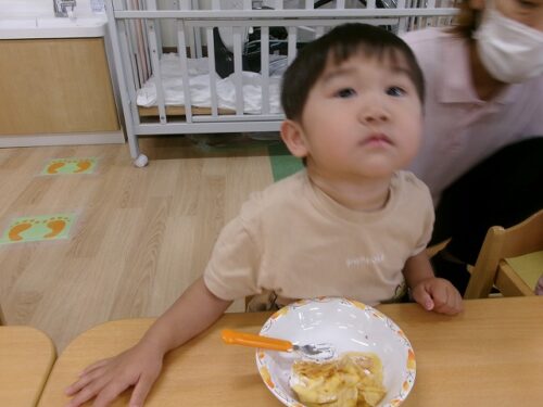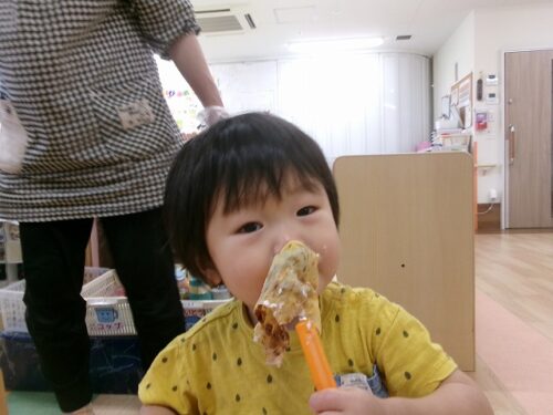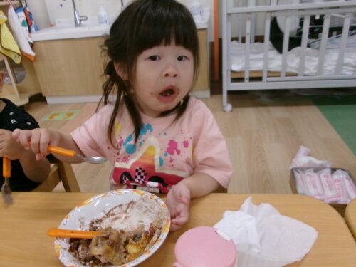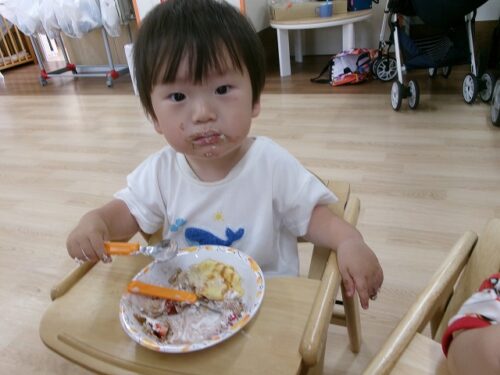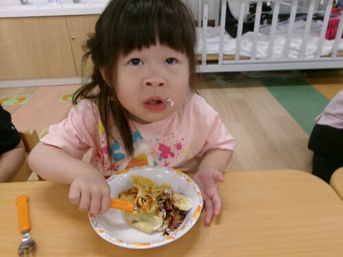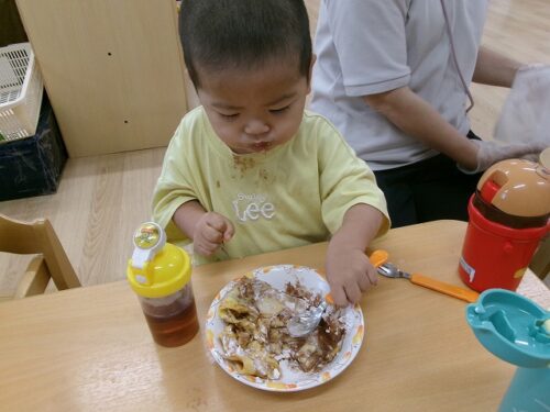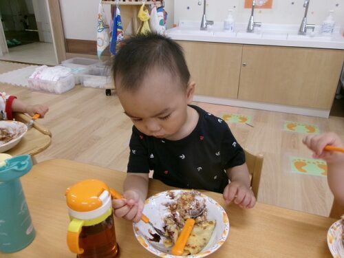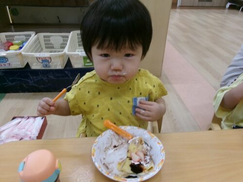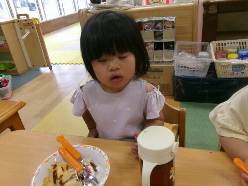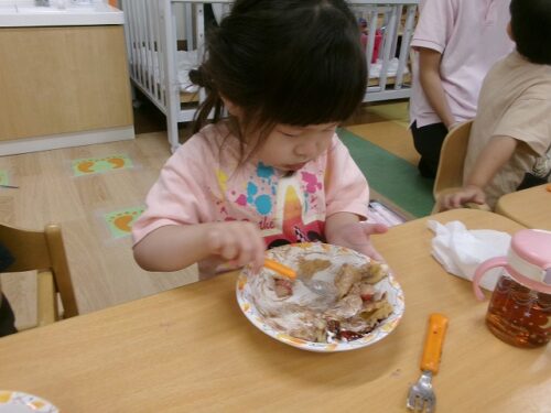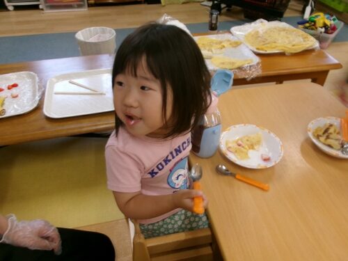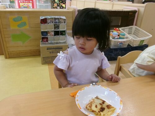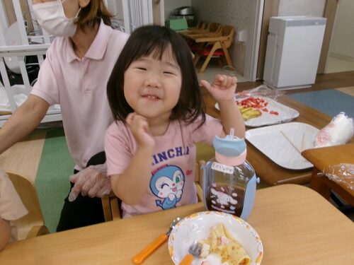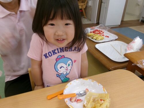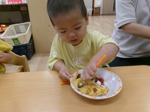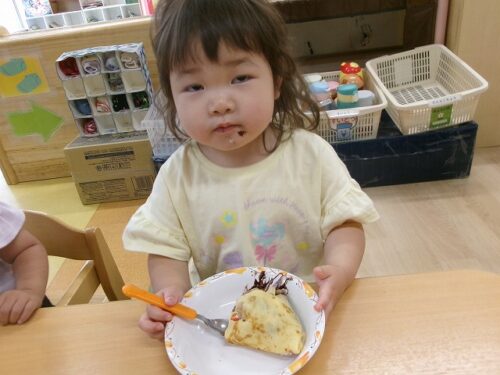 誕生日会恒例の会食、今回は午睡後のおやつの時間にクレープを食べました