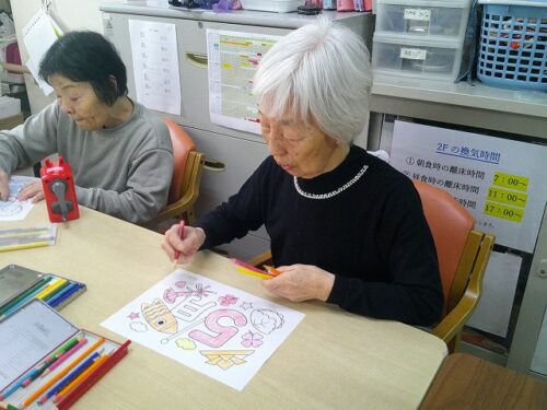 さわやかはーとらいふ西京極 ☆2Fの仲良し様☆ 2025-05-20 2025-05-24 西京極の2階に入居して頂いてるお二人は居室が隣同士という事もあり、大変仲良しです。この日も談話室で二人仲良く5月の塗り絵を楽しそうにされていました。