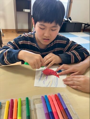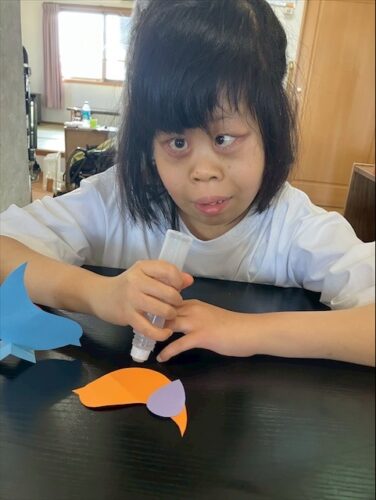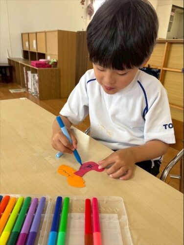 鳥の製作では、好きな色を選び、羽や躰に自由に柄を描き自分だけの可愛い鳥を