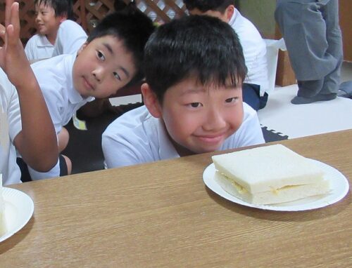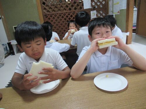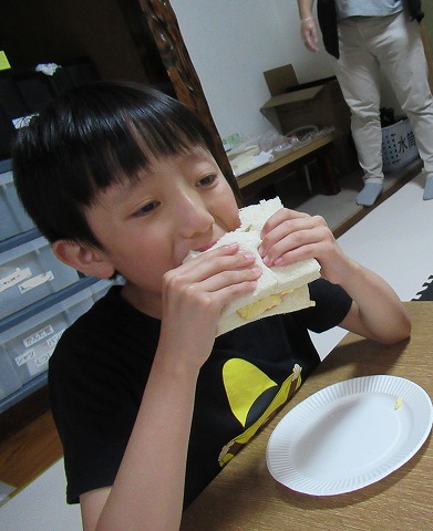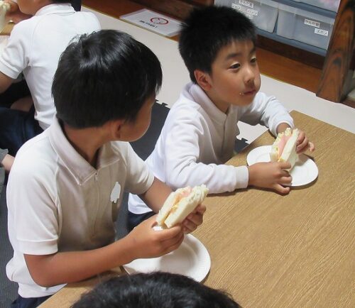 今回は、手作りおやつレクにてサンドイッチを食べた様子について