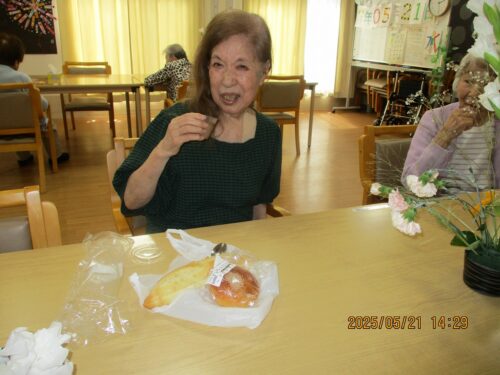 今回も、焼きたてフワフワパン持って来てくれましたよ。
