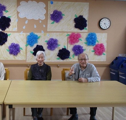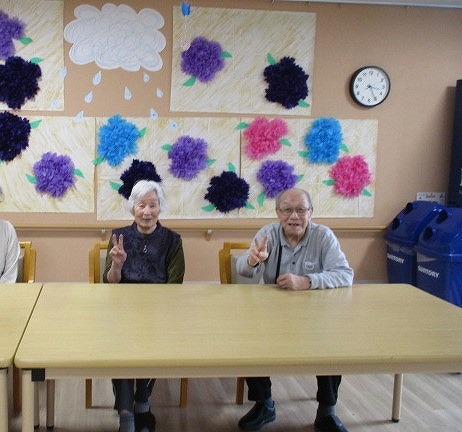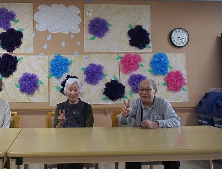 さわやか室蘭弐番館 3階 壁画完成♪ 2025-05-22 2025-05-21 皆様こんにちは♪ 昨日の様子をお届けします 入居者様が取り組まれていた 食堂の壁画が完成しました☆ 紫陽花の花が綺麗に咲いています ご来館の際は是非ご覧下さい(#^^#)