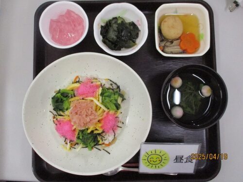 春のちらし寿司・炊き合わせ・わかめの酢の物
