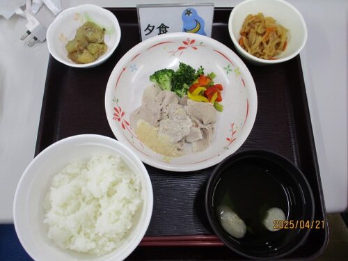 ご飯・豚肉と温野菜のごまだれかけ