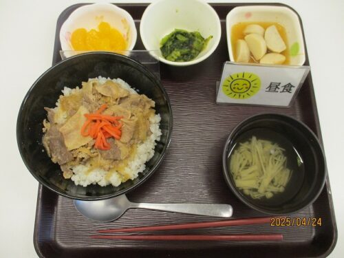 豚丼・里芋の胡麻煮・小松菜の和え物