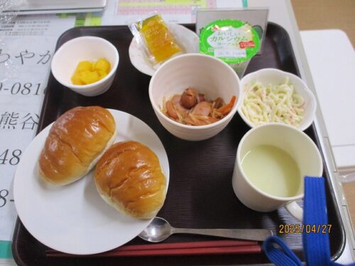 パン・ウインナーともやしソテー・スパゲッティサラダ