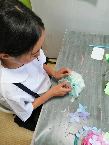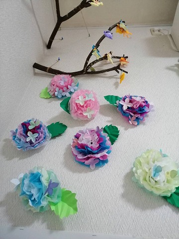 5月22日(木)の活動では、「あじさいの花」を作りました。