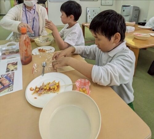 先日、おやつレクでマカピザ棒というマカロ二を使ったピザを作りました!