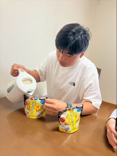 そこで非常時の為にさいだいじ館では災害食をある程度備蓄しています。写真の物はお湯だけではなく、備蓄している水の場合でも作れる様になっています。