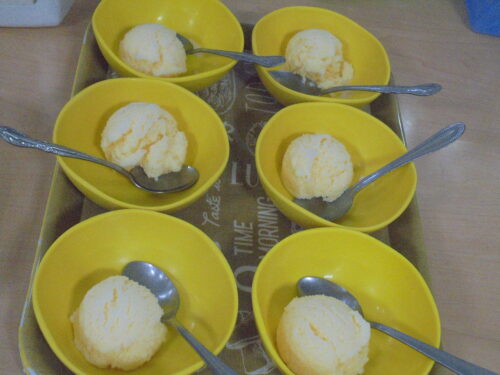 おやつには職員の手作りアイスを召し上がっていただきました🍨