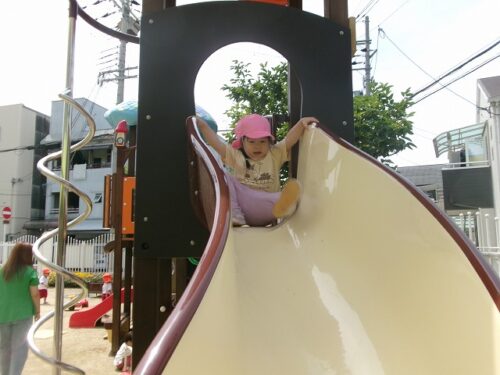 「すべり台、楽しいわ💛」