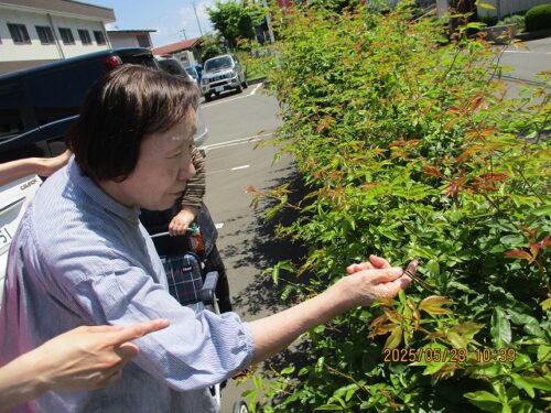 昨日の外の景色と、お散歩に行かれたご入居者様の様子をお届けします。