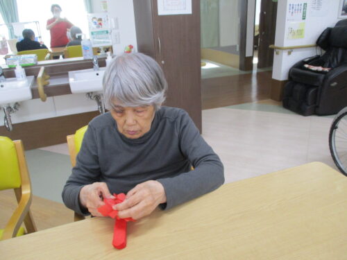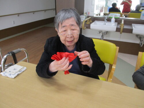 赤い赤い情熱色でお花を作りました。どこに飾りましょう...