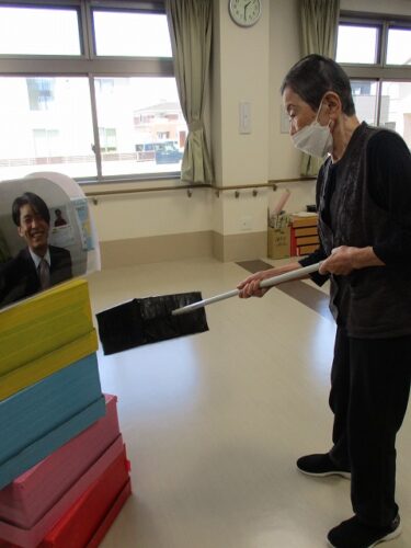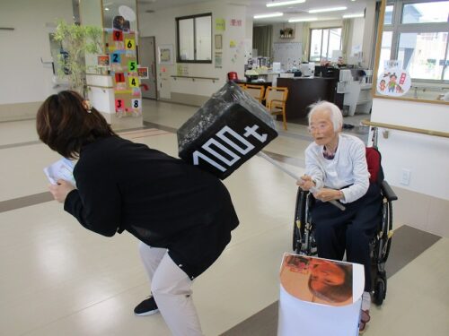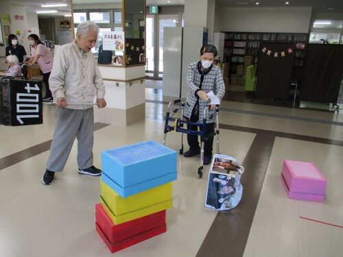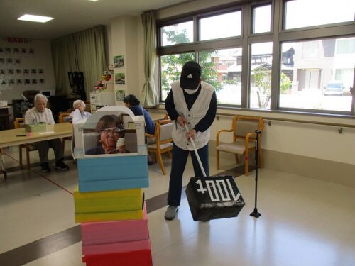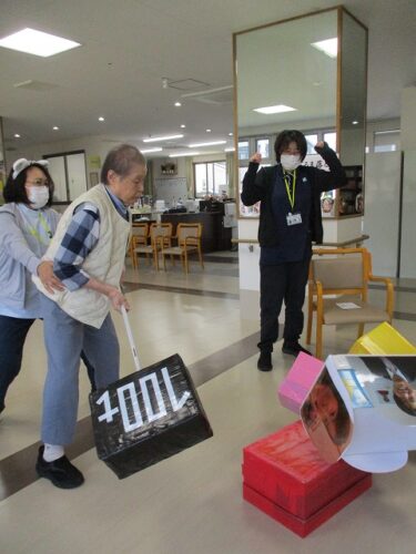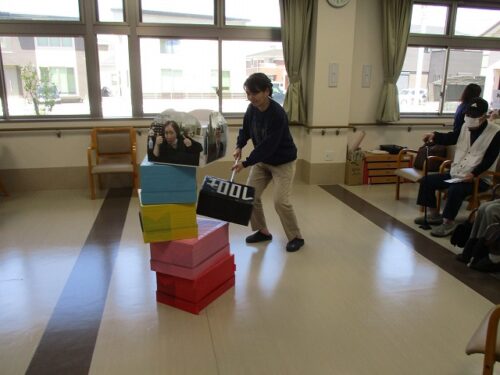 積み木(箱)が重く、職員が試し打ちしてもなかなか落とせなかったぐらい