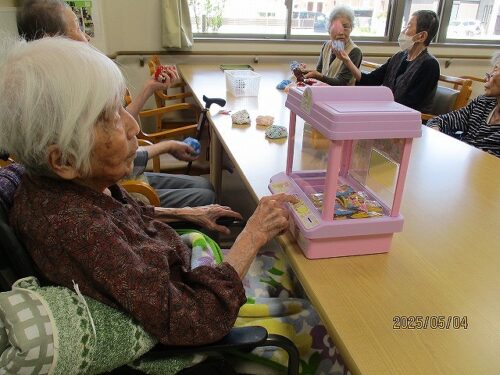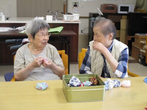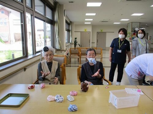 「お手玉懐かし~、昔よく遊んでたわ」と昔話を交えて懐かしみながら楽しんでおられる場面も…